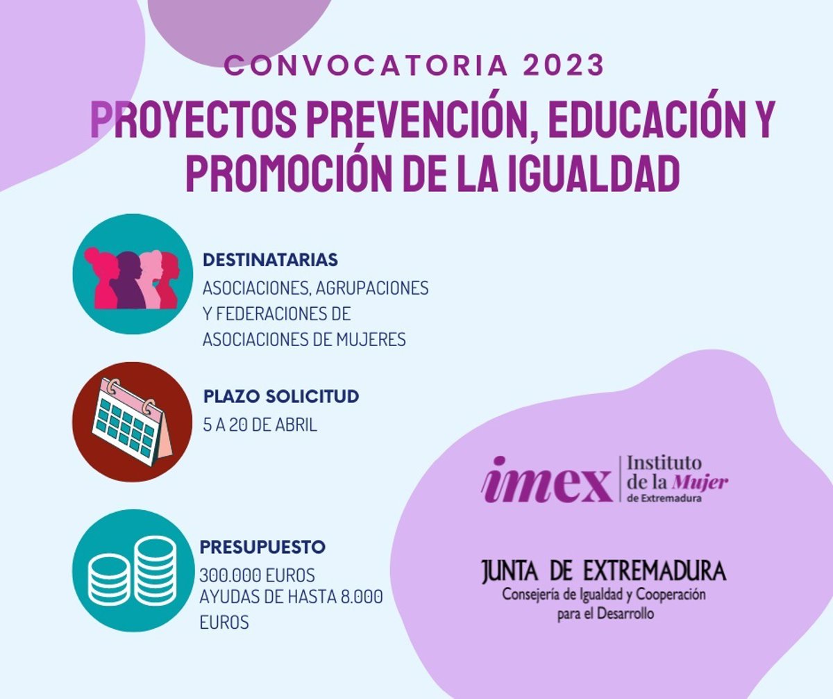El Diario Oficial de Extremadura (DOE) publica este martes, 4 de abril, la convocatoria para el ejercicio 2023 de subvenciones dirigidas a asociaciones, agrupaciones y federaciones de mujeres para desarrollar proyectos relacionados con la consecución del principio de igualdad de oportunidades entre féminas y hombres.