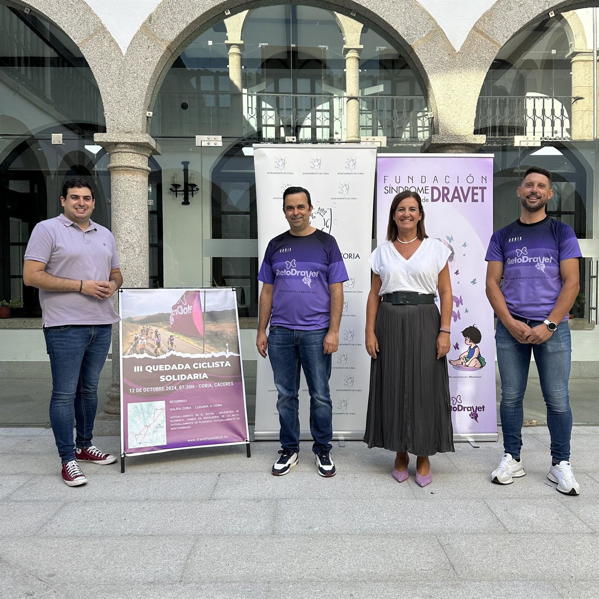 El evento ha sido presentado por la alcaldesa de Coria, Almudena Domingo Pirrongelli, acompañada del concejal, Raúl Sánchez y promotores de la actividad, Maikel Bertol y Daniel, el padre de una niña con Síndrome de Dravet.