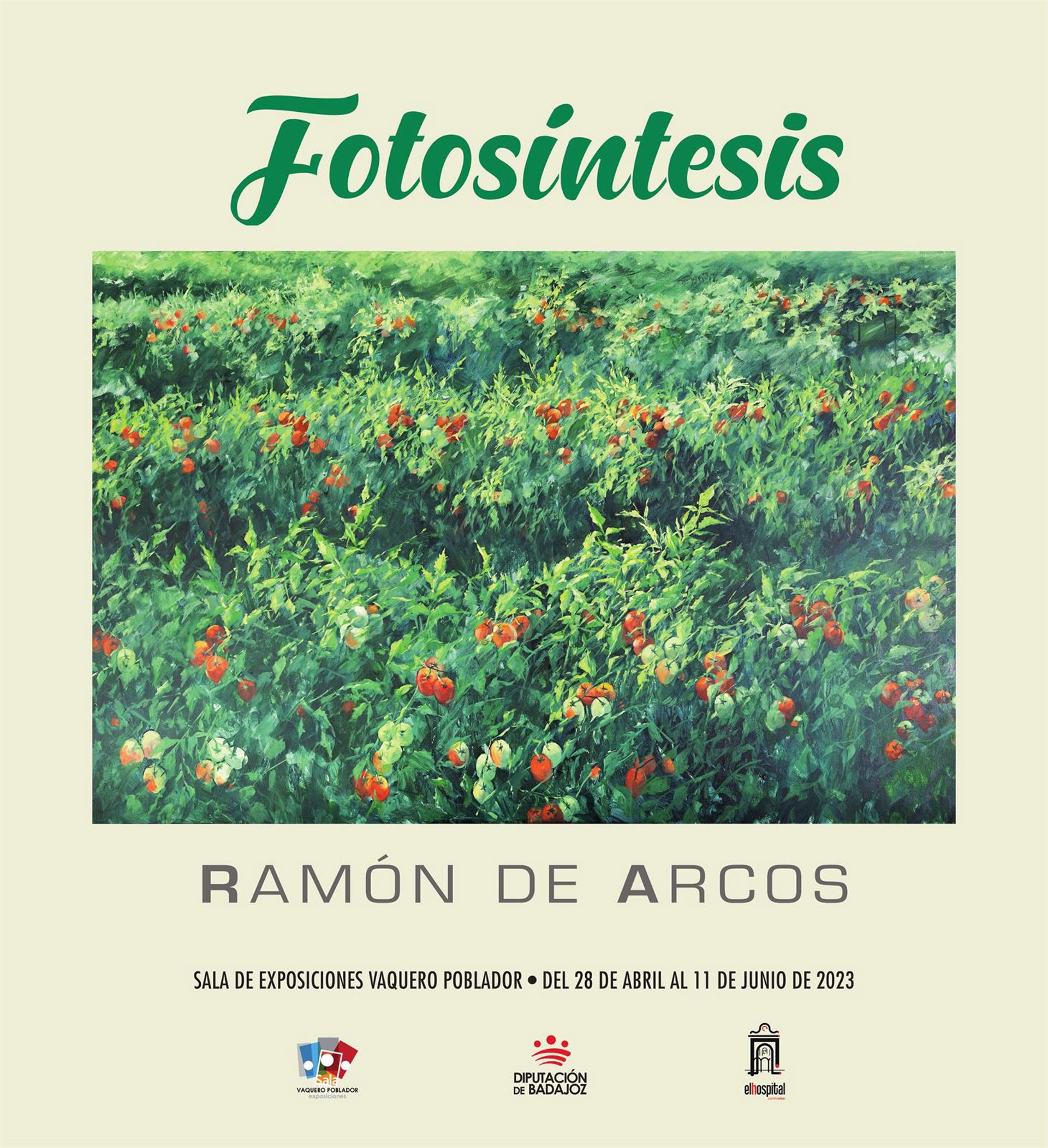 La exposición 'Fotosíntesis' del pintor Ramón de Arcos se podrá visitar desde este viernes, 28 de abril y hasta el próximo 11 de junio en la sala Vaquero Poblador de la Diputación de Badajoz en 'El Hospital-Centro Vivo' en la capital pacense.