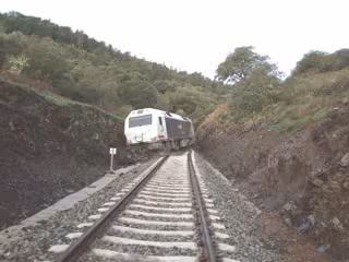 El descarrilamiento ocurrió en el punto kilométrico 79,900 en el término municipal de La Nava, a un kilómetro del apeadero de la localidad y a cuatro kilómetros de la población, y, según las primeras estimaciones, se debió a un desprendimiento de tierra.