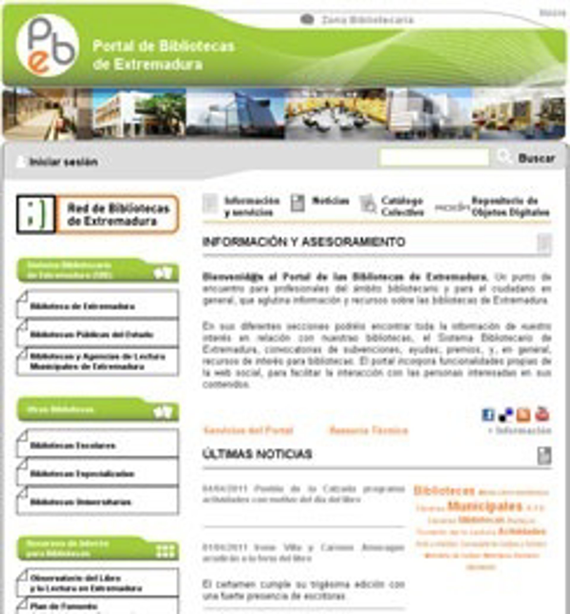 Los contenidos orientados al ciudadano ocupan un "lugar preferente" en la página de inicio y se organizan en tres secciones principales: Información sobre el Sistema Bibliotecario de Extremadura, Otras Bibliotecas y Recursos de interés para Bibliotecas.