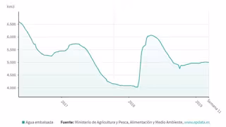 Los datos señalan que en este momento los embalses guardan un 16,29 por ciento menos agua que la media de los últimos diez años y se sitúan un 2,62 por ciento por debajo del volumen de agua embalsada de hace un año.