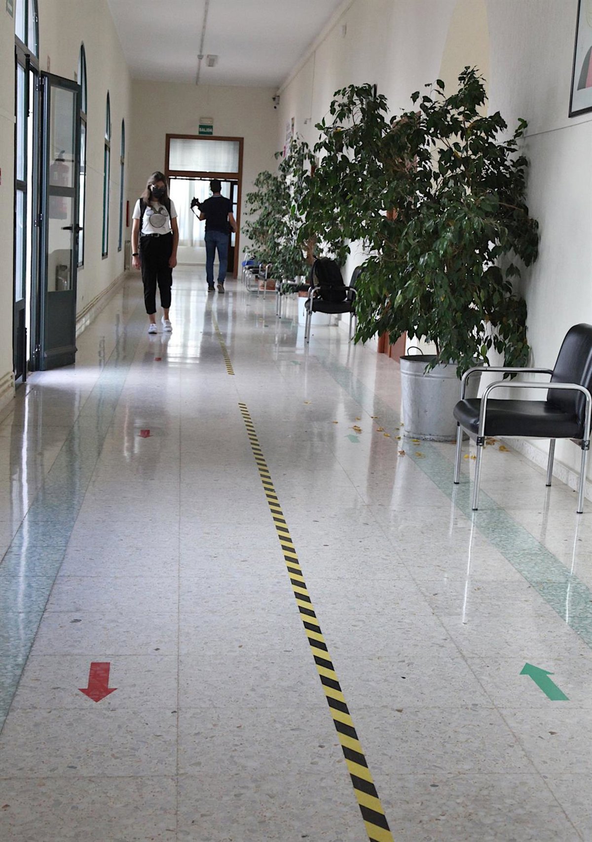 Además, este mismo lunes se ha terminado de instalar un arco de temperatura, por el que pasarán los estudiantes y que indicará si el mismo lleva mascarilla puesta y le marcará la temperatura. Posteriormente, se procederá a la desinfección de pies, con una alfombra especial, y de manos, con gel hidroalcohólico.