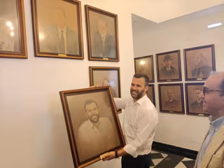 El propio Salaya ha colgado el cuadro en el pasillo que antecede al despacho de Alcaldía que ocupó el 15 de junio de 2019 cuando fue elegido alcalde de la ciudad y se convirtió en el regidor más joven de una capital de provincia, con tan solo 30 años, solo unos días antes de cumplir los 31.