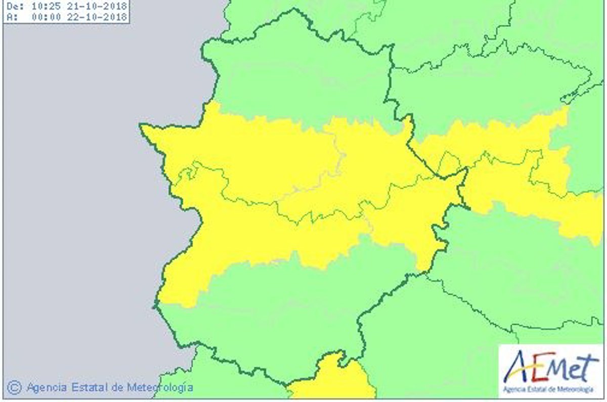 La previsión de fuertes lluvias continuará este domingo, 21 de octubre, en varios puntos de la comunidad autónoma de Extremadura, principalmente por la tarde y en las zona centro de la comunidad.