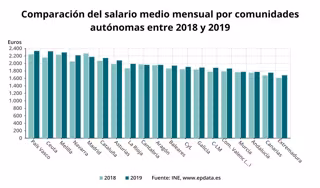 Así, el salario medio en la región se sitúa 300 euros por debajo de la media nacional, que en 2019 alcanza los 1.982,3 euros al mes, un 1,9 por ciento más que en 2018, según el decil de salarios que elabora el Instituto Nacional de Estadística (INE) a partir de los datos de la Encuesta de Población Activa (EPA).