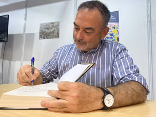 Jesús Sánchez Adalid (Villanueva de la Serena, 1962) llenó este pasado jueves por la tarde la caseta central de la Feria del Libro de Cáceres en la presentación de su última novela 'Una luz en la noche de Roma' (Harper Collins), y protagonizó una de las colas más largas para la firma de ejemplares de una de las figuras más importantes de las letras extremeñas.