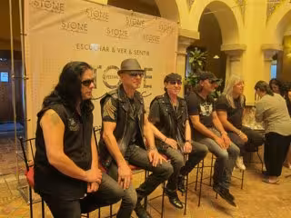 Los componentes de 'Scorpions' han llegado este jueves a Mérida, donde, en una rueda de prensa, se han mostrado contentos y agradecidos de poder disfrutar de una ciudad tan "antigua y hermosa", así como de poder abrir el 'Stone & Music Festival' con su actuación en la que presentarán su nuevo álbum 'Return to Forever'.