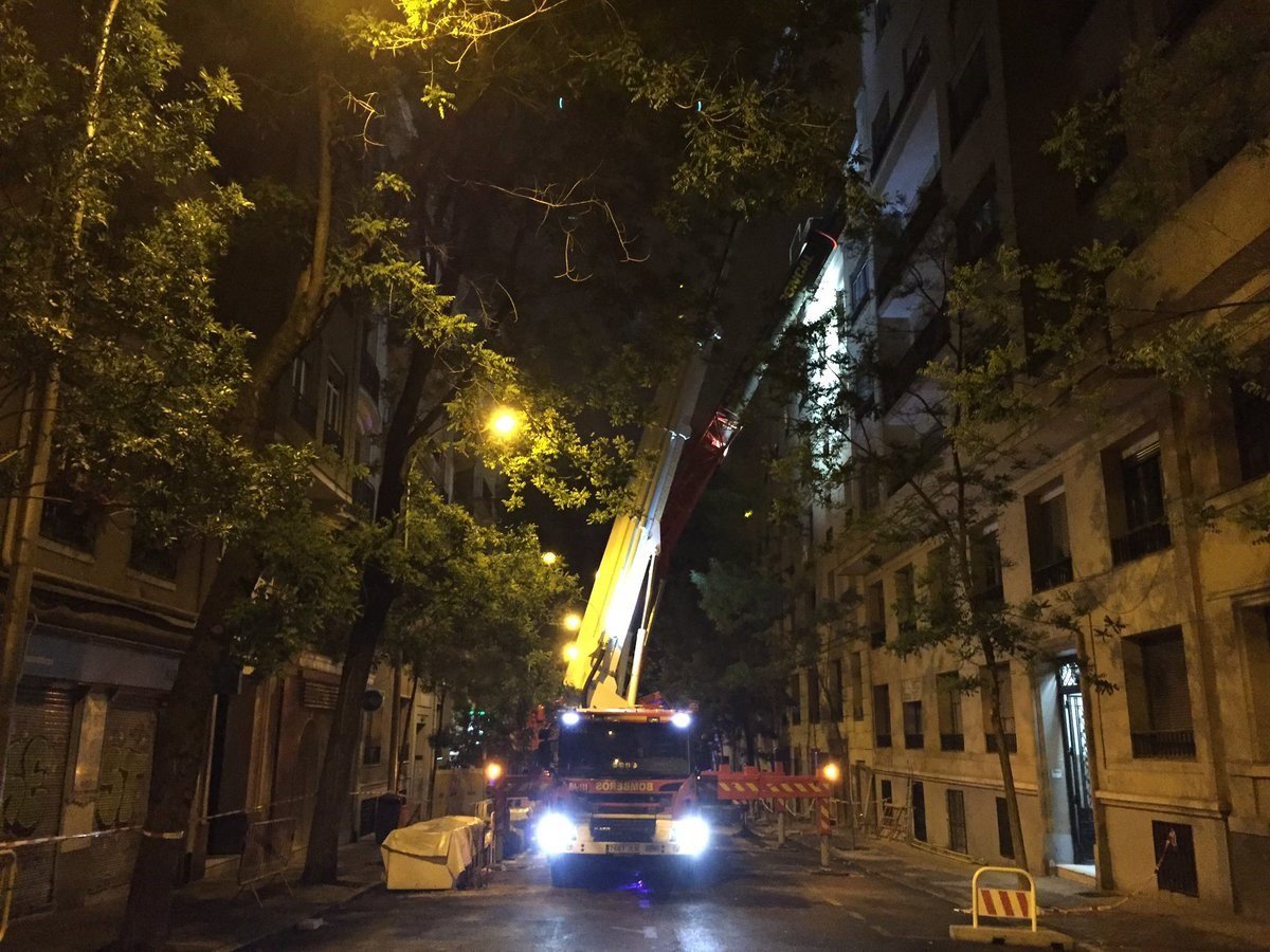 Emergencias Madrid ha explicado que la grúa ha permitido desmontar elementos que se encontraban inestables en la estructura, por lo que se podrá avanzar "más rápido" en el desescombro desde primera hora de la mañana.