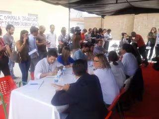 Durante más de una hora, responsables del PSOE y de Podemos, encabezados por Guillermo Fernández Vara y Álvaro Jaén, se ha reunido en una carpa situada en la Corrala de Mérida, donde un grupo de ciudadanos ha ocupado algunas viviendas vacías.