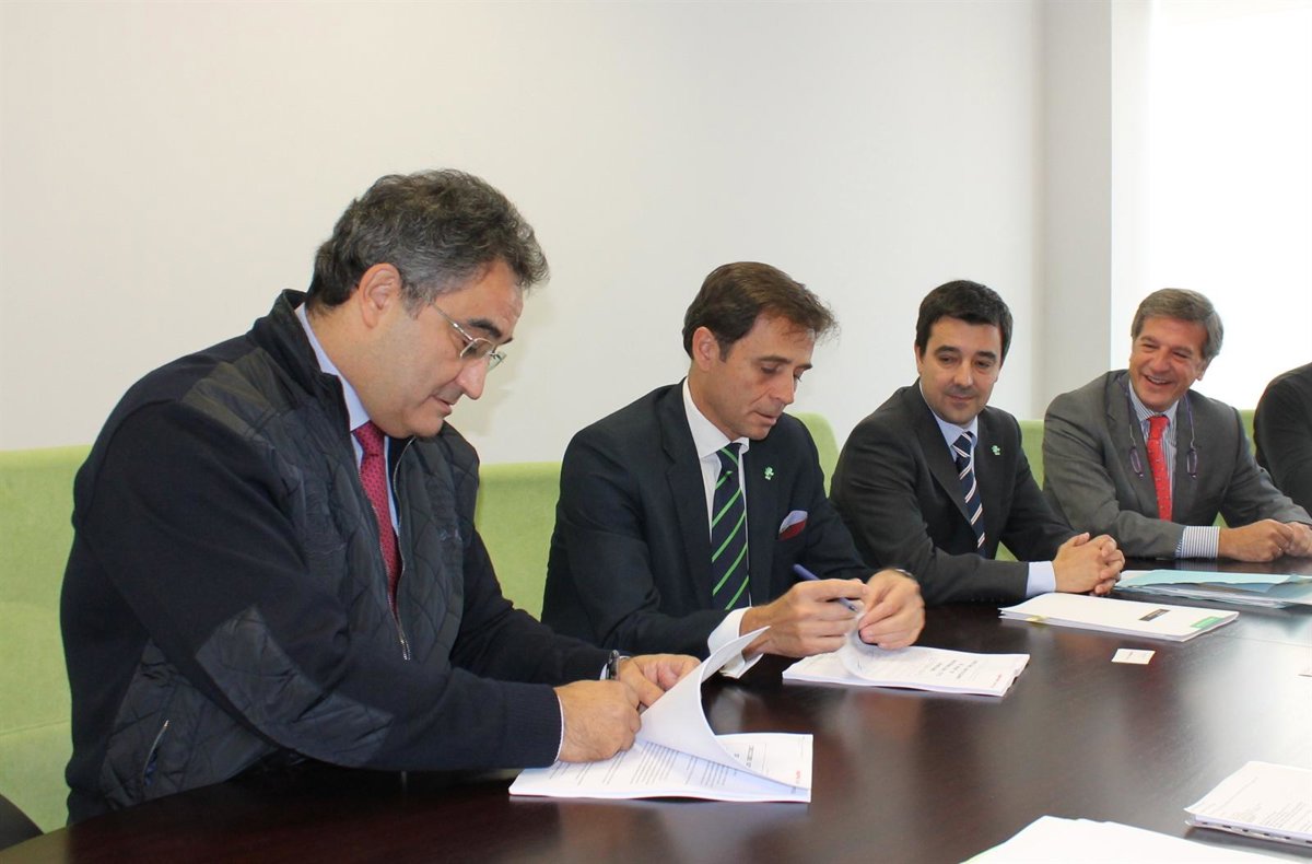 El director gerente del Servicio Extremeño de Salud (SES), Joaquín García Guerrero, y el director técnico de Mapfre Empresas en Extremadura, Germán Hurtado Cabrera, han firmado este martes el seguro de responsabilidad civil y patrimonial que dará cobertura a la actuación, frente a terceros, de todos los trabajadores del sistema público sociosanitario extremeño.