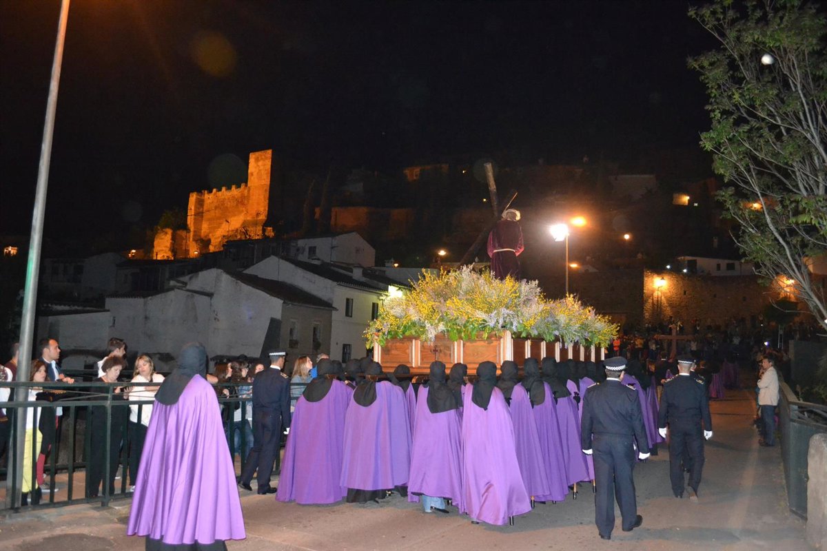 El Cristo del Amparo, con su austera ornamentación de flores silvestres, bajará hasta Fuente Concejo a hombros de los cofrades para enfilar la calle Caleros, Plaza de Santiago, Godoy, Plazuela del Socorro, Tiendas, Plaza de Santa María, Arco de la Estrella, adarves, calle Ancha y se recogerá en San Mateo pasadas las 2.00 horas. A lo largo del recorrido los hermanos realizan el Sermón de las Siete Palabras.