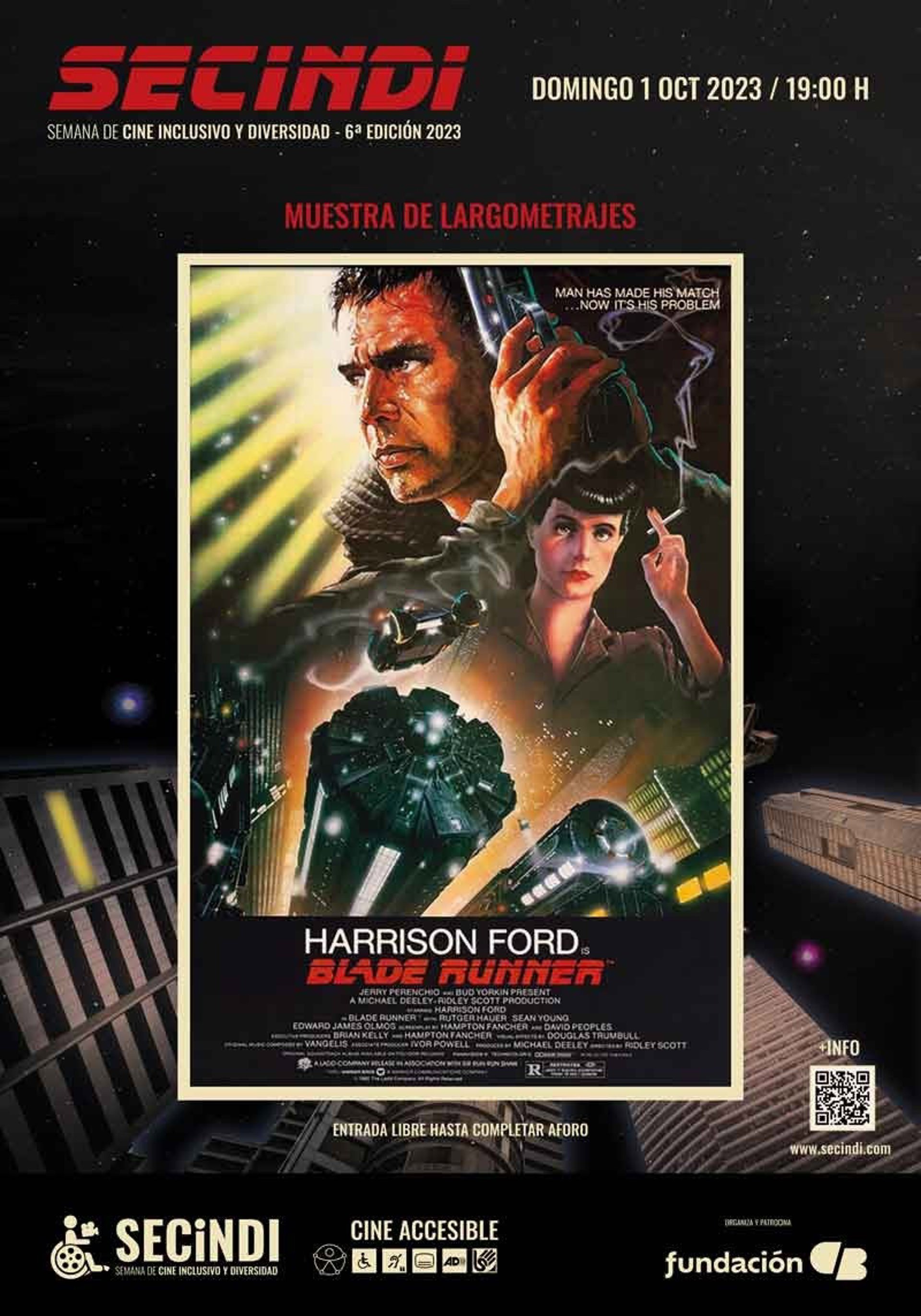 La Semana de Cine Inclusivo y Diversidad (Secindi) de Mérida, que se celebrará del 30 de septiembre al 7 de octubre, en el Centro Cultural "Santo Domingo" de Fundación CB, organizadora del certamen, proyectará 'Blade Runner', la película de Ridley Scott a la que se rendirá un homenaje en esta sexta edición del certamen.