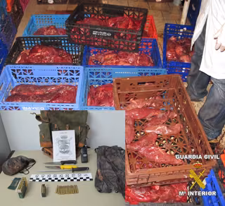 La Guardia Civil ha sorprendido a un presunto furtivo cuando transportaba más de 200 kilos de carne pertenecientes a cuatro ciervos.