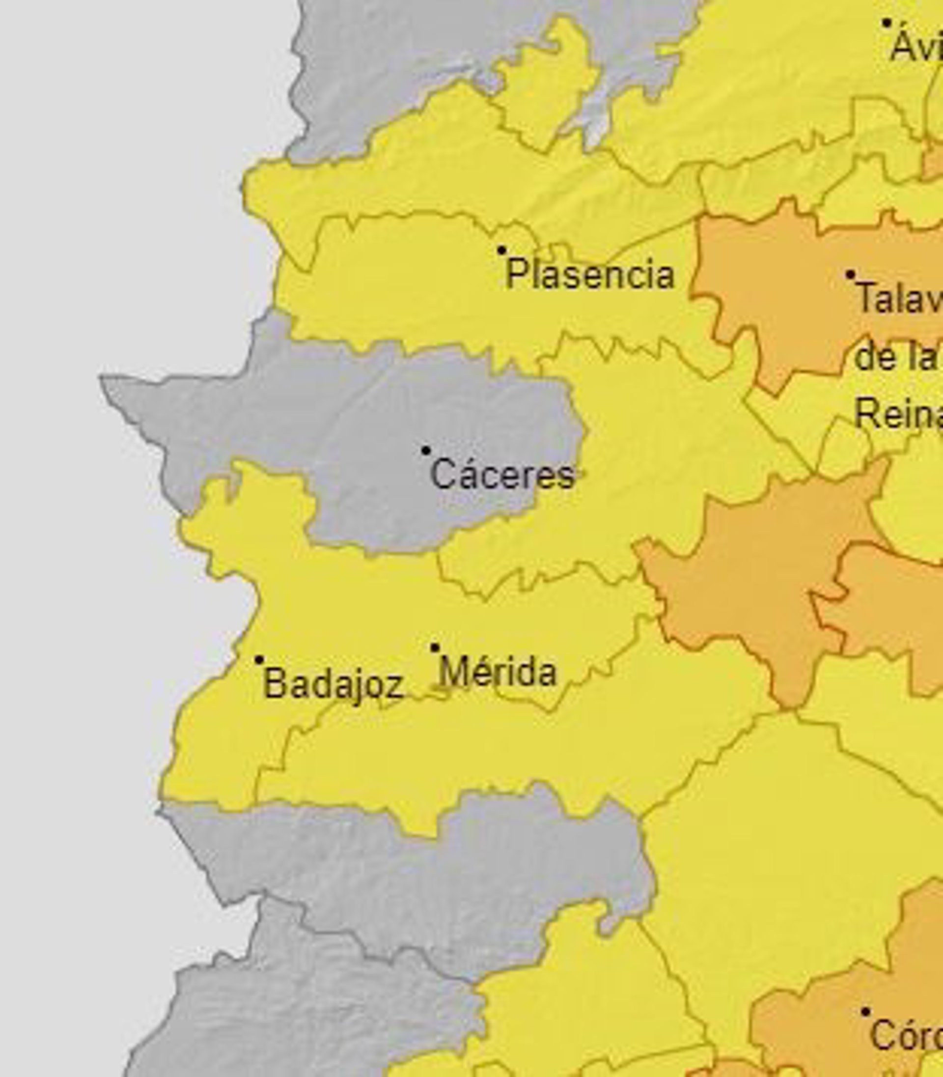 Por su parte, la alerta amarilla se activará en las Vegas del Guadiana, por temperaturas máximas de 39 grados; en las comarcas de Barros y La Serena y el Tajo y Alagón que podrán alcanzar los 38 grados de máxima, y en el norte de Cáceres y Villuercas y Montánchez, por máximas de 37 grados.