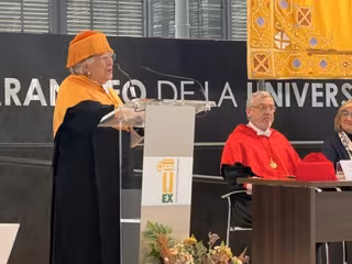 La ceremonia, presidida por el rector de la UEx, Pedro M. Fernández Salguero, ha reconocido la "excepcional trayectoria investigadora, docente y humana" de una de las mayores referentes internacionales en el análisis y el estudio del trabajo no remunerado, los cuidados y la desigualdad en el uso del tiempo.