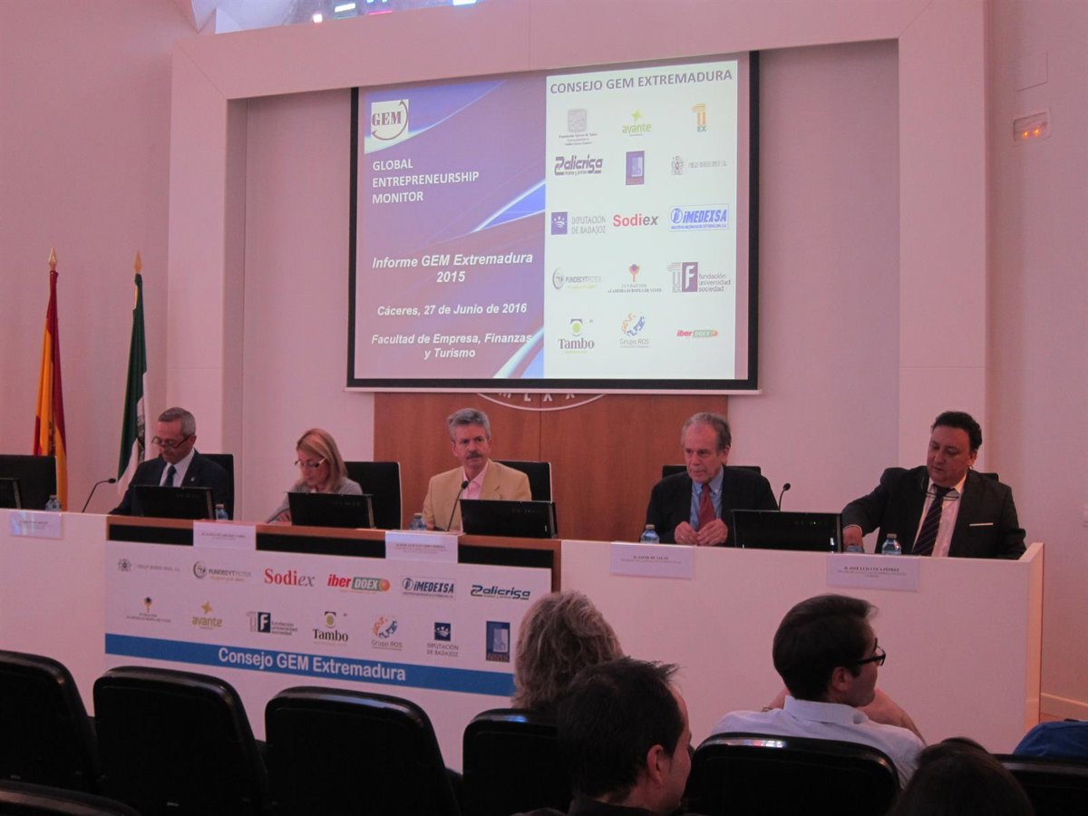 Todos estos datos se recogen en el informe GEM que se ha presentado esta tarde en la Facultad de Empresa, Finanzas y Turismo de la Universidad de Extremadura (UEx) en Cáceres con la presencia del consejero de Economía e Infraestructuras, José Luis Navarro; la presidenta del Consejo Económico y Social, Mercedes Vaquera; el presidente de la Fundación Xavier de Salas, Jaime de Salas; el presidente del Consejo GEM Extremadura, Elisardo Plaza; la alcaldesa de Cáceres, Elena Nevado, y la director ejecutivo del proyecto, Ricardo Hernández Mogollón, entre otras autoridades.