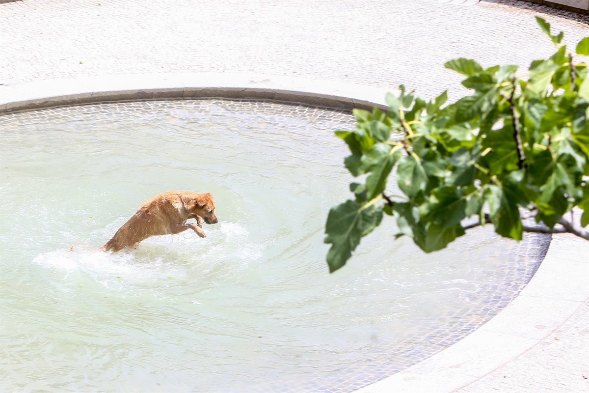Un perro se moja en una fuente en el parque - Ricardo Rubio - Europa Press