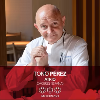 El chef Toño Pérez (Atrio, Cáceres) ha sido uno de los grandes triunfadores de la Gala Michelin celebrada este martes en Toledo al hacerse con la tercera Estrella y colar a su restaurante entre los trece que en España pueden lucir esa distinción.