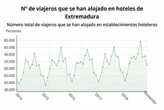 De igual modo, la estancia media en Extremadura se sitúa en 1,79 días en el pasado noviembre, lo que supone un 2,2 por ciento menos que en el mismo mes de 2017.