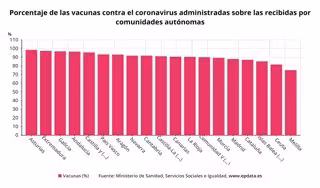 Porcentaje por CCAA de vacunas contra la Covid-19 administradas sobre las recibidas - EPDATA