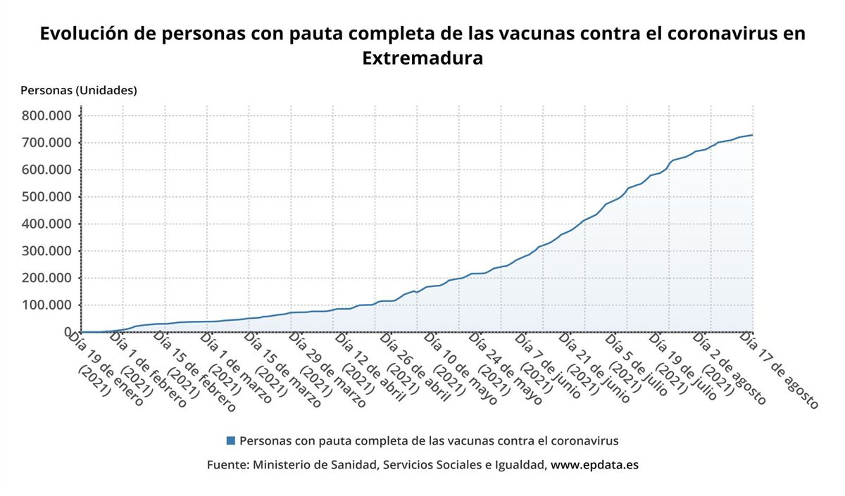 Personas con pauta completa de las vacunas contra el coronavirus en Extremadura. - EPDATA