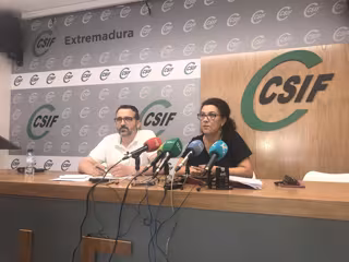 La presidenta del sector de Empresa Privada de CSIF Extremadura, Amparo Galán, y el responsable del sindicato en el Grupo Tenorio, Máximo Blanco, han informado este martes en rueda de prensa de estas actas de infracción dictadas contra la empresa de ambulancias.