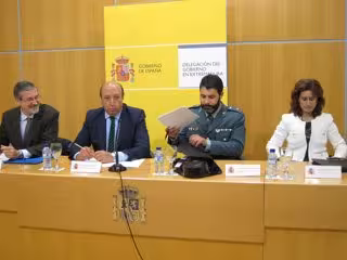 El delegado del Gobierno en Extremadura, Germán López Iglesias, ha presentado este martes la campaña acompañado por los directores provinciales de Tráfico de Cáceres y Badajoz, Cristina Redondo e Ignacio Martínez, respectivamente, y el comandante jefe del sector de Tráfico en Extremadura, Héctor David Pulido.
