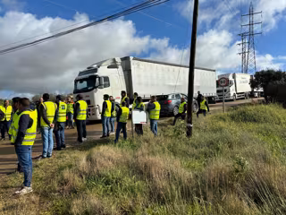 Transportistas se unen este lunes, día 12, a la protesta de agricultores en Mérida que está provocando cortes intermitentes en el polígono El Prado y en el cruce de Montijo en la capital extremeña.