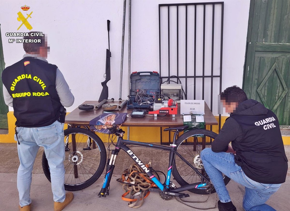 Se da la circunstancia, que en el momento de inspeccionar concretamente la vivienda, también se intervinieron 32 gramos de hachís (unas 125 dosis aproximadamente), propiedad de uno de los moradores que compartía el hogar, por lo que se le instruyeron diligencias como investigado por su presunta implicación en un delito contra la salud pública.
