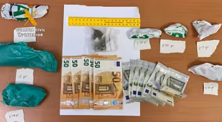 Los agentes aprehendieron un total de 43 gramos de cogollos de marihuana y 290 euros en billetes de diverso valor, procediendo a la detención de un varón de 19 años de edad, y la investigación de otro de 27, como supuestos autores de un delito contra la salud pública, por tráfico de drogas.