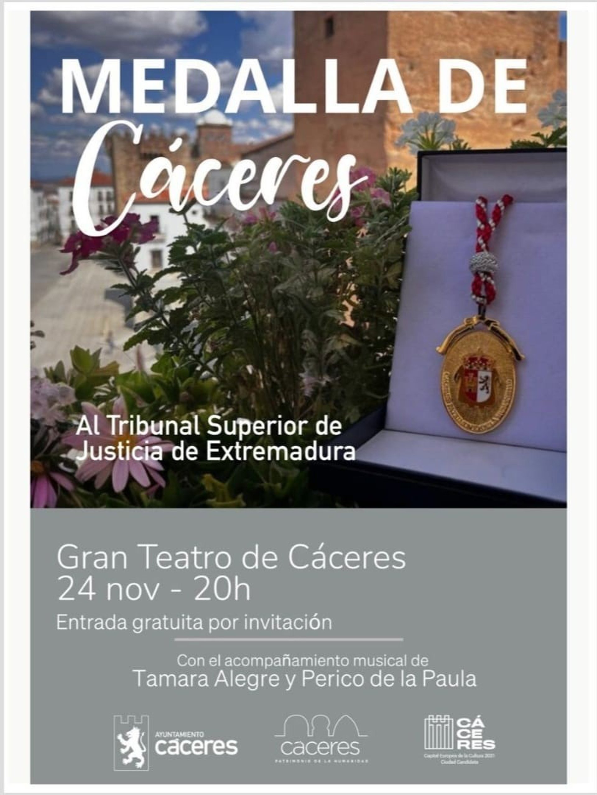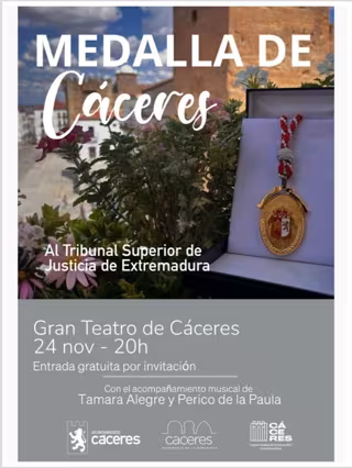 Cartel de entrega de la Medalla de Cáceres al TSJEx - AYUNTAMIENTO DE CÁCERES