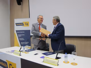El rector de la UEx, Segundo Píriz, y el presidente de la Fundación Caja de Badajoz, Emilio Vázquez, han firmado este lunes el convenio del III programa de becas para empresas extremeñas de la Fundación Caja de Badajoz puesto en marcha en 2013 con un total de 20 becarios beneficiados y de los que ocho se han quedado trabajando o, a raíz de estas prácticas, han encontrado un puesto de trabajo.