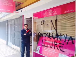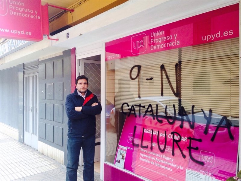 La sede de la formación UPyD en la ciudad de Badajoz ha aparecido con pintadas independientistas tras la celebración del 9-N en Cataluña, en las que se puede leer 'Catalunya Lliure'