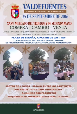 El mercado comenzará a las 11,00 horas, y en él, los asistentes podrán encontrar objetos tales como libros, electrodomésticos, ropa, discos o abalorios, herramientas y muebles, entre otros, salvo productos alimentarios", según ha informado en nota de prensa el Ayuntamiento de Valdefuentes.