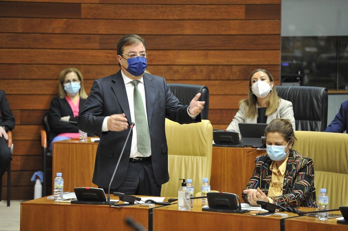 El presidente de la Junta de Extremadura, Guillermo Fernández Vara, en el pleno de la Asamblea, junto a la vicepresidenta primera, Pilar Blanco-Morales - ASAMBLEA DE EXTREMADURA