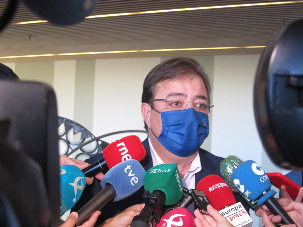 El presidente de la Junta, Guillermo Fernández Vara, atiende a los medios de comunicación. - EUROPA PRESS
