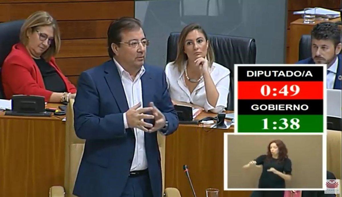 Vara en el pleno de la Asamblea respondiendo a preguntas de los grupos parlamentarios - ASAMBLEA DE EXTREMADURA