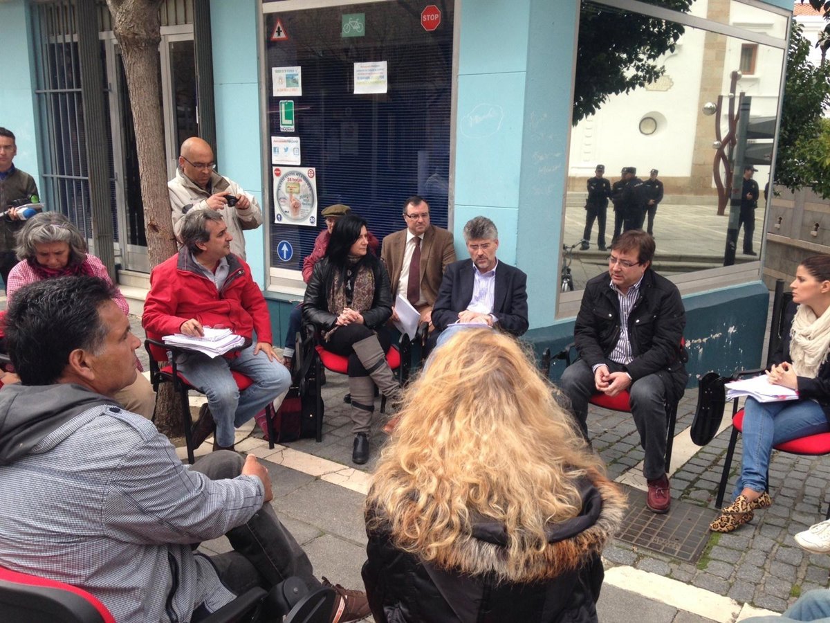 El secretario general del PSOE de Extremadura, Guillermo Fernández Vara, y otros dirigentes socialistas se han reunido este miércoles en la calle con representantes de la Plataforma por la Renta Básica en la región extremeña, al impedirles la entrada a estos últimos en la Asamblea de Extremadura.