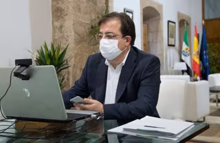 Imagen de archivo del presidente de la Junta de Extremadura, Guillermo Fernández Vara, en una reunión telemática - JUNTA DE EXTREMADURA