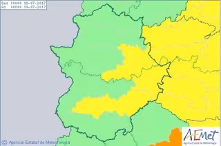 Las comarcas de La Serena, Tierra de Barros y La Siberia, en la provincia de Badajoz, y Villuercas y Montánchez, en la de Cáceres, permanecerán este martes, 18 de julio, en aviso amarillo por altas temperaturas, que podrán alcanzar los 38 grados de máxima.