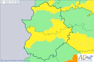 Varias comarcas de Extremadura permanecen este domingo, 30 de julio, en aviso amarillo por altas temperaturas, que podrán alcanzar hasta los 38 grados de máxima.