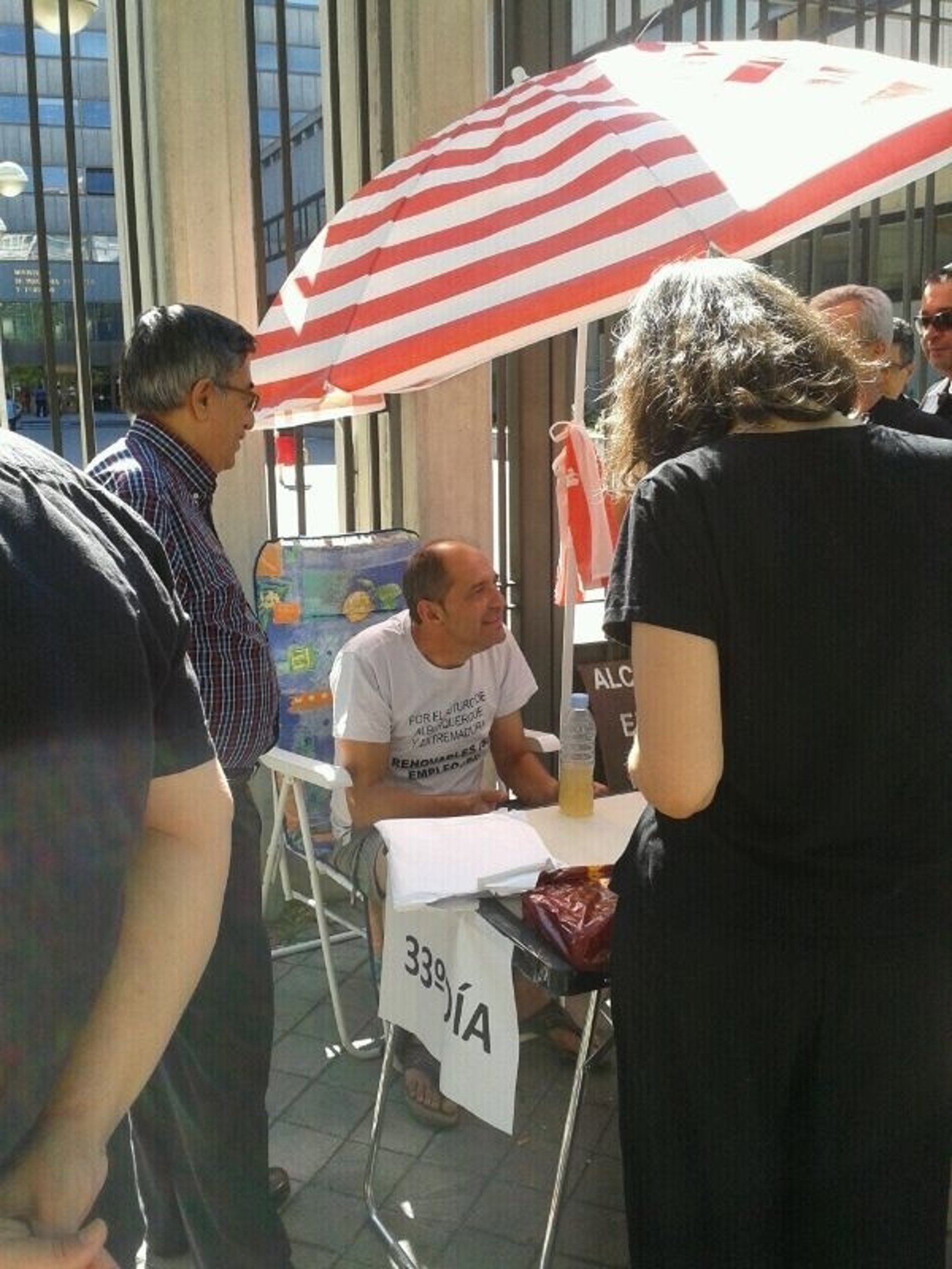 En nota de prensa, este colectivo recuerda que Ángel Vadillo cumple este jueves 38 días en una huelga de hambre "pacífica e indefinida", a las puertas del Ministerio de Industria de Madrid, "por las renovables y el empleo en Alburquerque y Extremadura".