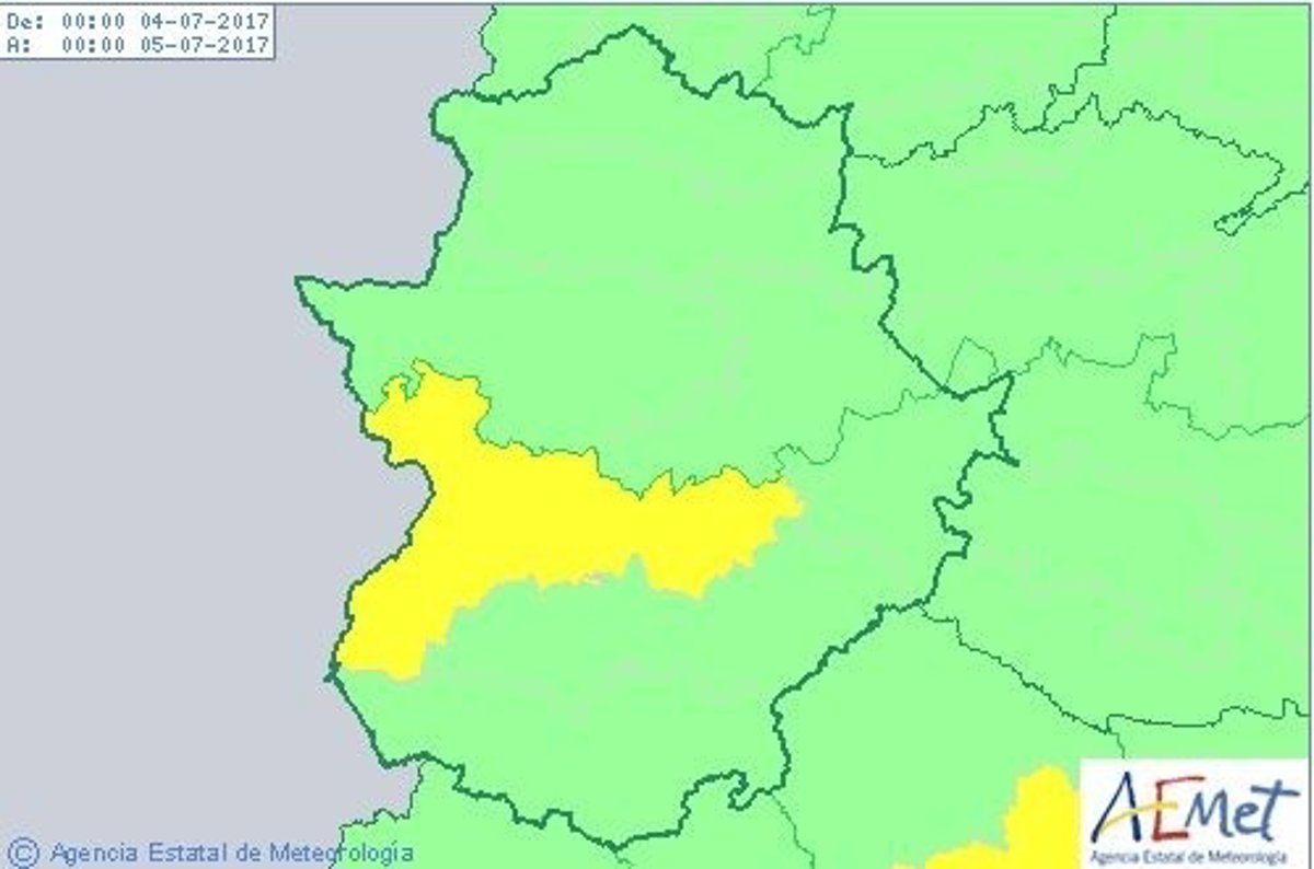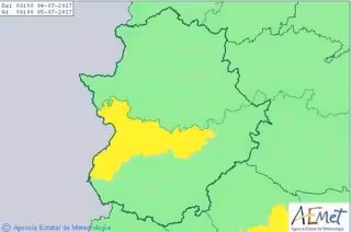 La comarca de las Vegas del Guadiana, en la provincia de Badajoz, permanecerá este martes, 4 de julio, en aviso amarillo por altas temperaturas, que podrán alcanzar máximas de 38 grados.
