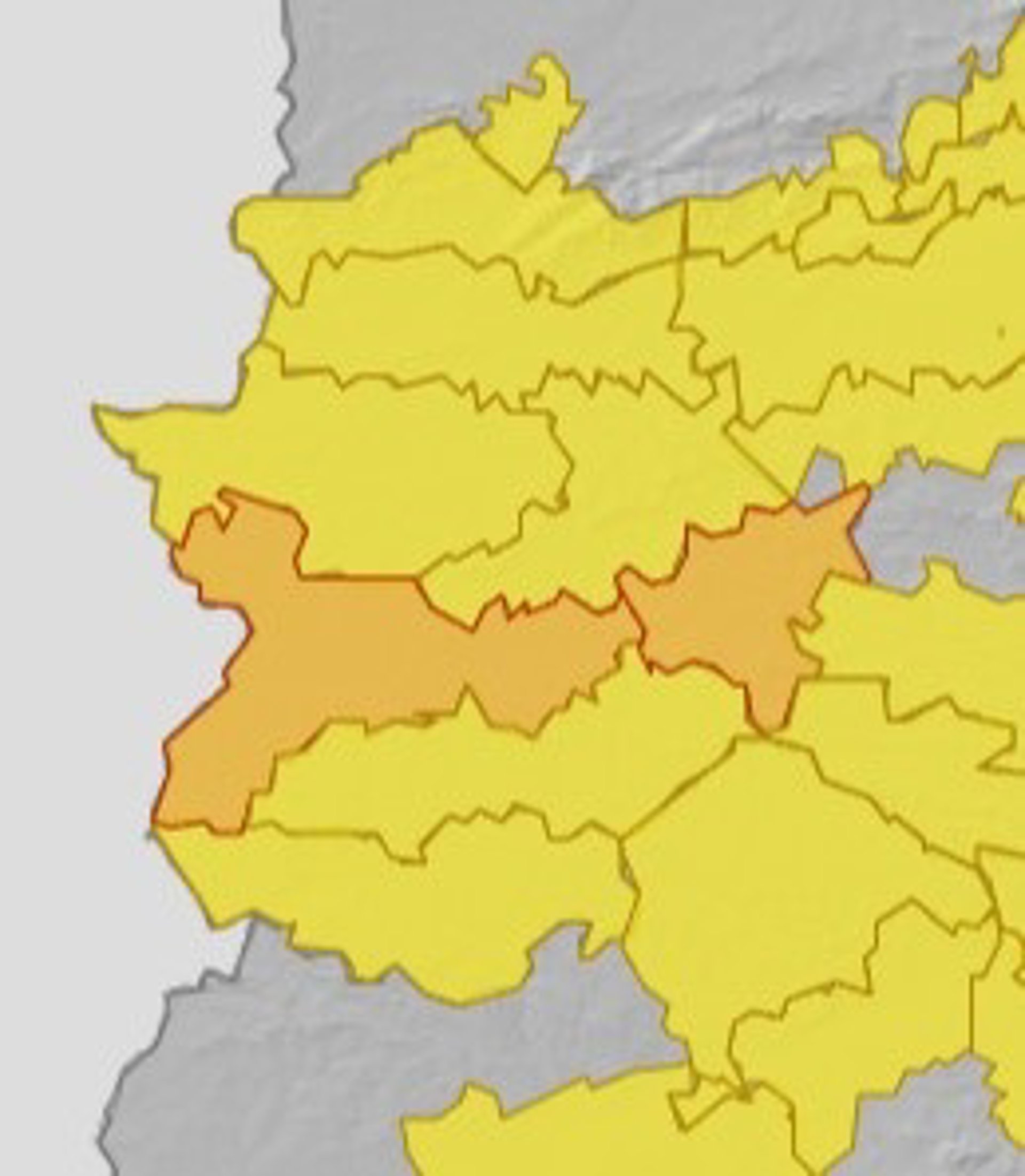 La alerta naranja se activará en ambas comarcas de la provincia de Badajoz a las 13,00 horas de este lunes, y permanecerá hasta las 21,00 horas, según la previsión de la Agencia Estatal de Meteorología (Aemet).
