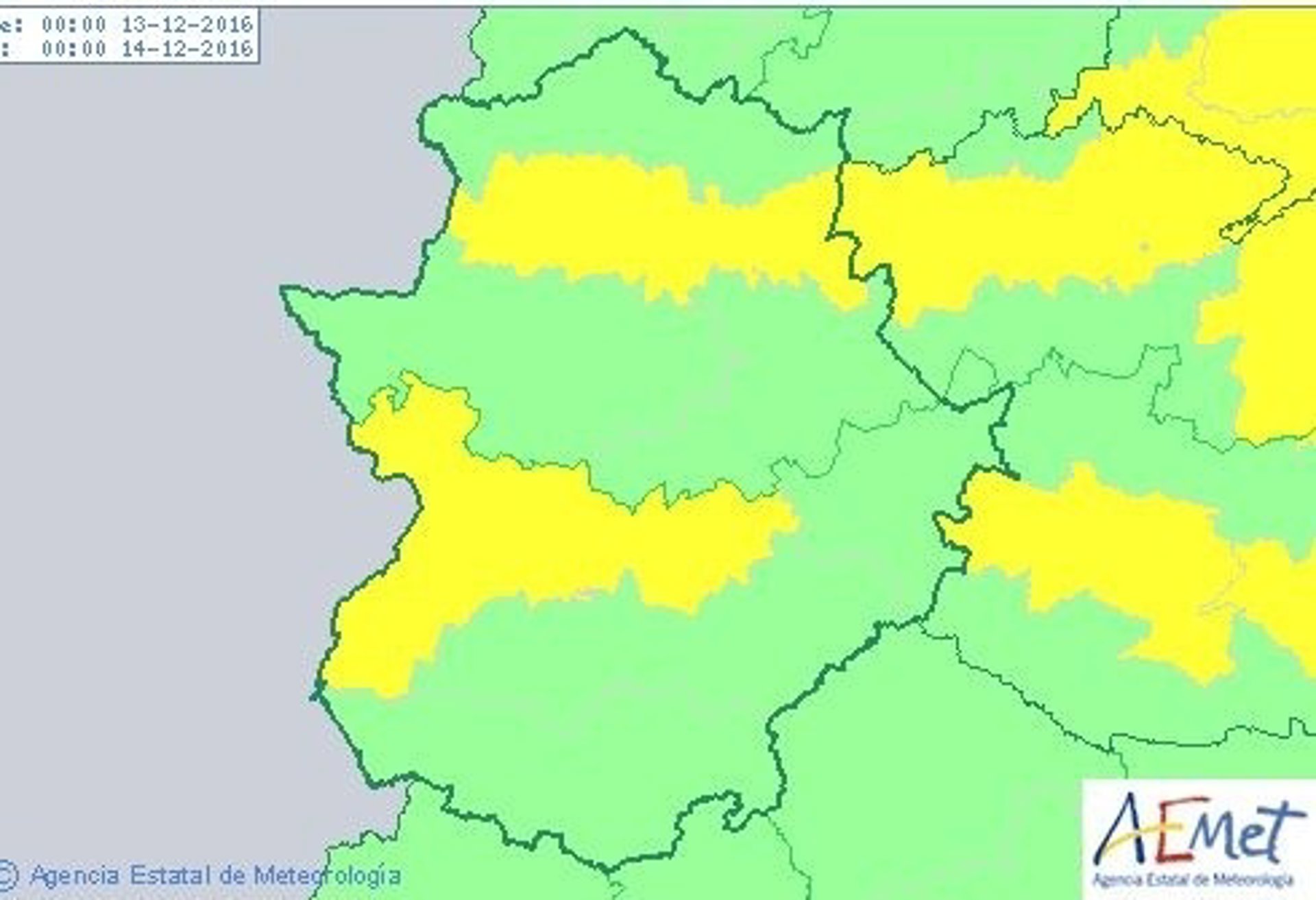 La alerta se prolongará entre las 00,00 horas y las 12,00 horas de este martes en esas zonas de Cáceres y Badajoz, en las que la visibilidad será de 100 metros, según la previsión de la Agencia Estatal de Meteorología.
