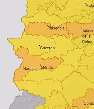 También se ha activado la alerta amarilla por altas temperaturas en la meseta cacereña y en las zonas de Tierra de Barros, Serena y Siberia, donde se podrán alcanzar temperaturas de hasta 39 grados.