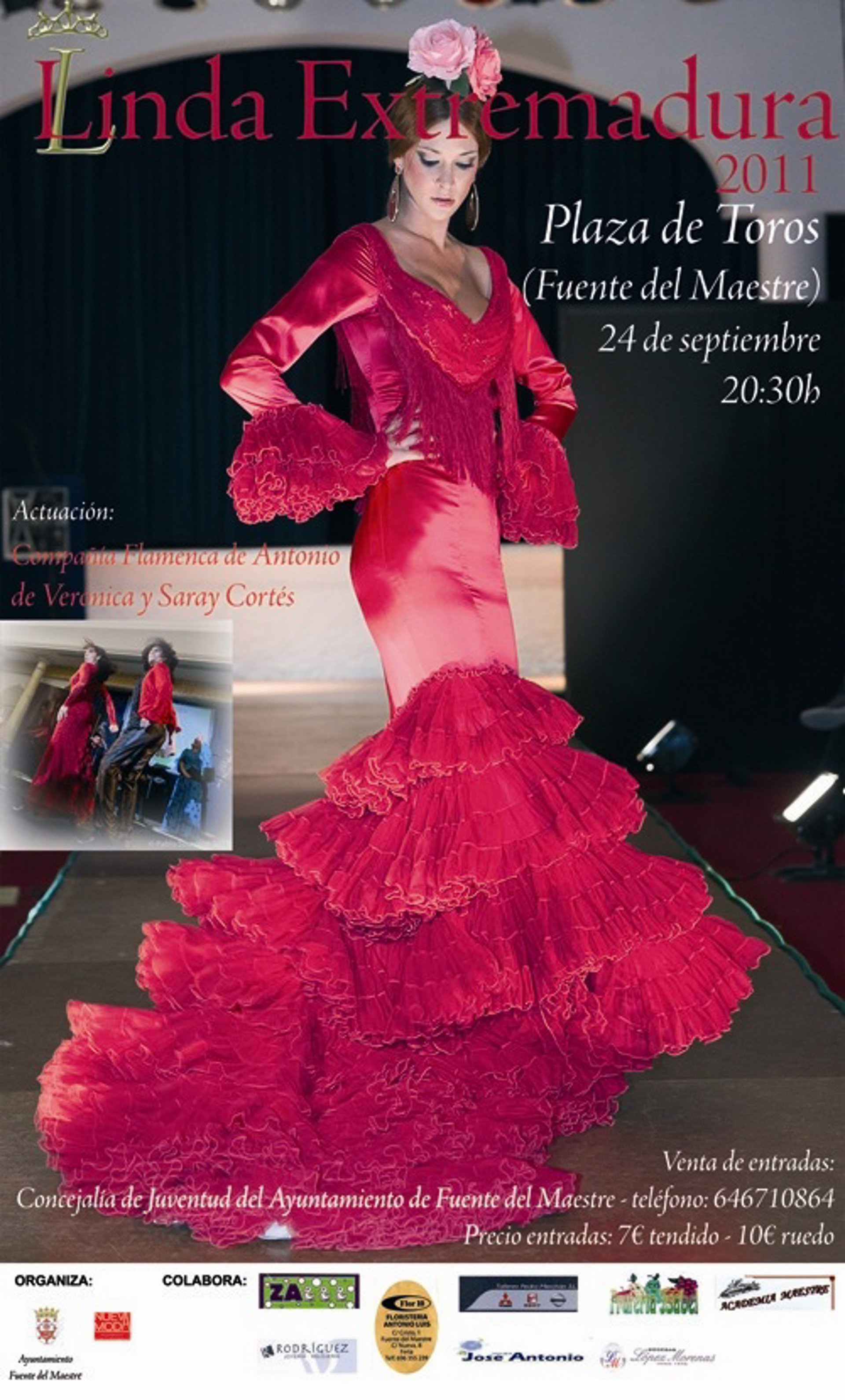 La Compañía Flamenca de Antonio de Verónica y Saray Vargas, amenizarán la noche con una actuación en directo, y finalmente el jurado adjudicará los diferentes títulos oficiales, como son Linda Fotogenia, Linda Elegancia, Linda Simpatía, que es elegido entre las propias candidatas, 2ª Linda de Honor, 1ª Linda de Honor y Linda Extremadura 2011, que será el título oficial valedero para el certamen nacional.