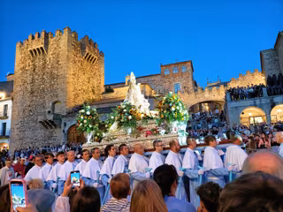 Cientos de cacereños acompañarán a la patrona de la ciudad en su procesión hasta la concatedral de Santa María donde se iniciará el Novenario. Todo el recorrido podrá seguirse en directo a través de una pantalla gigante situada en la Plaza Mayor.