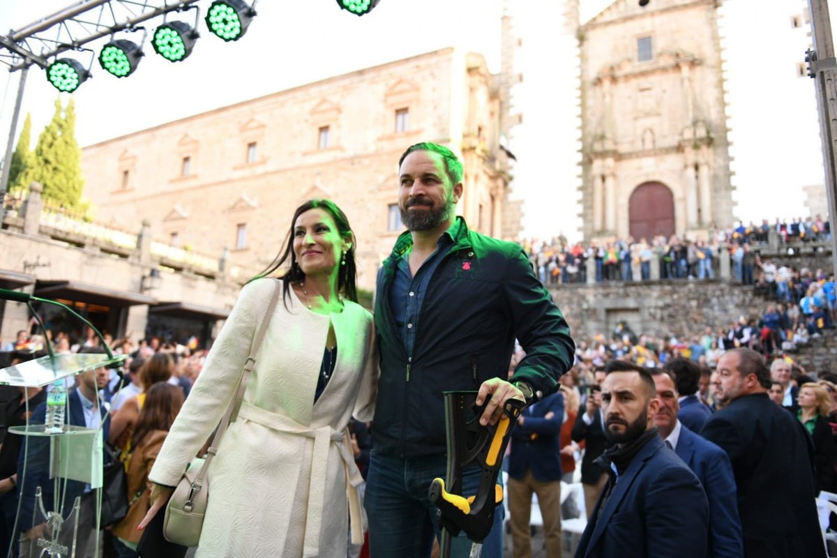 A Santiago Abascal le ha dado las gracias por haber venido a Cáceres "a traer esperanza" y "por haber conquistado parte del territorio nacional", ha señalado en su intervención la presidenta provincial, que ha abierto el acto en la emblemática plaza cacereña, en la que se han reunido más de 600 personas.
